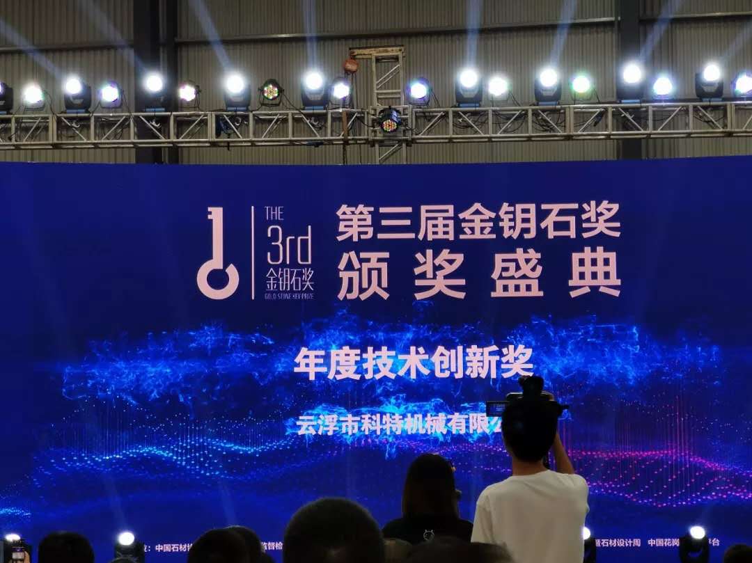2019年11月8日下午,年度行業(yè)盛會(huì)“第三屆金鑰石獎(jiǎng)?lì)C獎(jiǎng)盛典”在中國(guó)水頭石材產(chǎn)業(yè)展示運(yùn)營(yíng)中心隆重舉行?铺貦C(jī)械憑借行業(yè)首創(chuàng)、自主研發(fā)的“石材信息化3P解決方案”,繼【中國(guó)建材行業(yè)技術(shù)革新一等獎(jiǎng)】、【中國(guó)石材行業(yè)技術(shù)革新一等獎(jiǎng)】后,又獲殊榮,摘取【第三屆金鑰石—年度技術(shù)創(chuàng)新獎(jiǎng)】。